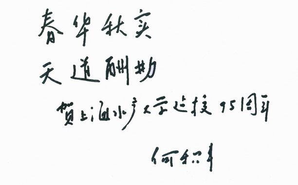 、华东师范大学教授、中国科学院院士何积丰为我校校庆题词:“春华秋实,天道酬勤”,祝贺我校九十五周年校庆。