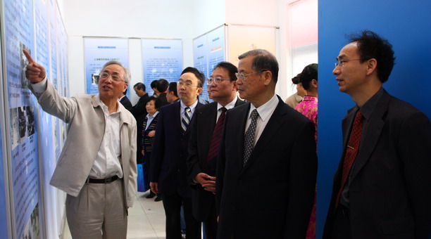 原上海市副市长庄晓天与校长潘迎捷共同为陈列馆揭幕