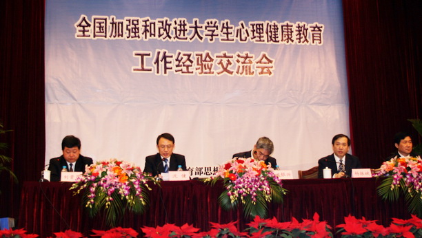 近年来,学校认真落实中央和上海的有关文件精神,通过强化工作队伍建设,扎实推进大学生的心理健康教育工作,取得了一定的进步。我们将以次会议为契机,进一步积极探索,采取有效措施,不断加强大学生心理健康教育队伍建设,不断推进大学生心理健康教育工作的深化发展,不断提高大学生心理健康素质,积极营造和谐文明的校园氛围。