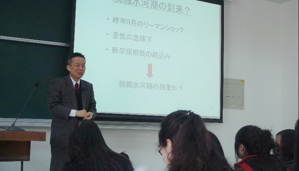 3月26日至31日,日本名城大学大西幹弘教授应邀访问我校,为外国语学院日语系师生作了几场精彩的学术报告。大西幹弘教授结合当前经济形势和大学生就业形势分别作了题为《雷曼兄弟冲击波与日本经济》、《日本大学生的就业状况》的报告。 大西幹弘教授首先介绍了金融危机对日本经济造成的影响,以及日本大学生的就业指导体系以及现状。使我校师生对当前日本经济的现状以及日本大学生的就业状况有了一定的认识和了解,尤其是日本大学生的就业指导体系对我校的就业指导活动有一定的启发和借鉴意义。 (外国语学院)