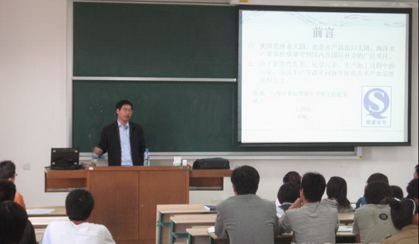 5月2—3日,中国海洋大学水产品加工与贮藏工程学科“泰山学者”特聘教授、博士研究生导师薛长湖教授和江南大学食品科学与技术国家重点实验室、食品学院教授、博士生导师夏文水教授应邀到访我校,并为我校师生带来了精彩的学术讲座。学术讲座期间,薛教授先后以水产品深加工、活性物质提取、分离及应用,冷冻与保鲜加工工艺等为例,对研究生同学如何进行课题选择,怎样做课题研究进行了深入讲解和详细说明,同时也向大家介绍了其正在进行当中的海参课题研究进展。夏文水教授则在对江南大学的基本概况进行介绍之后,详细阐述了食品工业、功能与技术的前沿进展,以及食物多糖的研究状况,通过两位教授的耐心讲解,更加深了研究生同学们对食品这一朝阳产业的理解,大大提升了同学们踏踏实实做好科学研究工作的信心和决心。
