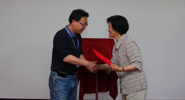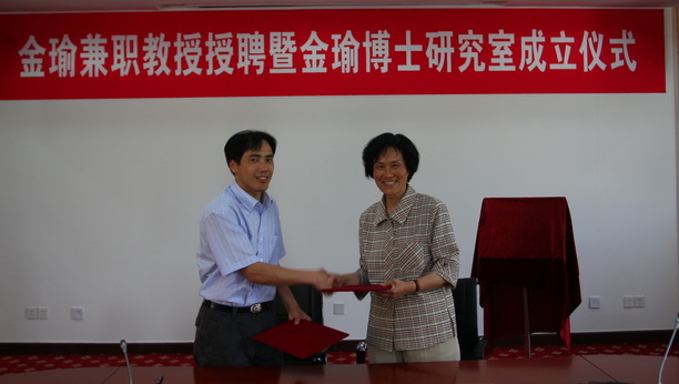 郑卫东处长向金瑜教授颁发兼职教授聘书