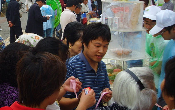 在展板展示区,“世博知识、法规宣传、食疗保健、饮食安全、畜禽肉类、蛋乳制品、水产品类、水果蔬菜”八大类型展板为当地居民展示了丰富实用的世博知识及饮食安全常识,同时也再一次敲起了食品安全的警钟;活动现场设置的人体脂肪仪吸引了众多市民驻足尝试,市民只需花几秒钟的时间,就能得到一张脂肪健康状况数据表,包括身体脂肪含量以及内脏脂肪比例,并有专业培训的志愿者为居民提供健康饮食搭配准确详尽的解释咨询;学生志愿者同时还在现场给村民讲解如何识别伪劣“冬虫夏草”和假冒“野山参”;有很多居民围在专家咨询台前,询问猪流感是否能吃猪肉等热点食品安全问题,专家一一进行了科学详尽的解释。