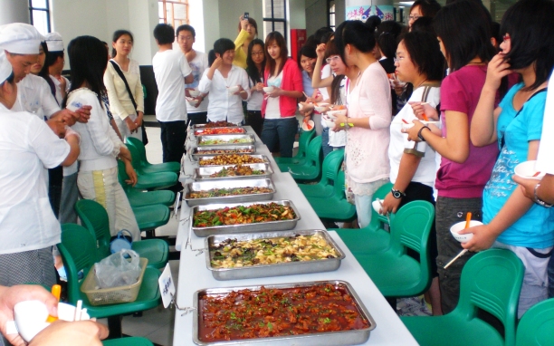 6月2日中午,由上海海洋大学学生膳食委员会举办的“食韵•活力•和谐”——海大饮食十佳菜肴评比活动在第一餐厅举行。经过同学们的快乐品尝和热情投票,海大饮食十佳菜肴新鲜出炉,粤菜 “菠萝咕咾肉” 鲜艳的色泽、扑鼻的清香、以酸甜的口感力压群芳,夺得十佳菜肴榜首。川菜 “水煮牛肉”、京菜“糟溜鱼片”、广东甜品 “红枣年糕”、农家土菜“椒盐牛蛙”、浙菜“糖醋小排”、重庆的“川味辣子鸡”、金陵的“牛肉粉丝汤”、西式“烤鸡腿”和经过食堂厨师创新改良的杭帮菜 “茄汁软鸡”均榜上有名。