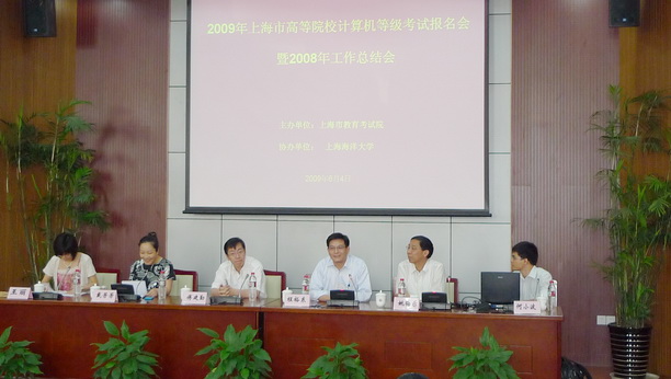 6月4日,由上海市教育考试院主办、我校协办的“2009上海市高校计算机等级考试报名会暨2008年工作总结会”在我校召开,全市六十多所高校共一百多位代表出席会议。 会议由市教育考试院党委书记姚梅乐主持,程裕东副校长代表学校致欢迎辞,市教委高教处傅建勤副处长到会讲话。会后,与会代表参观了校园并到图文信息中心顶层俯瞰全景,美丽而宽敞的校园给代表们留下了深刻的印象。 (教务处)