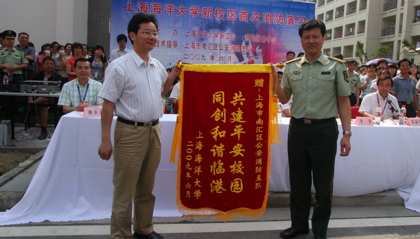 演习成功举行,我校向南汇消防支队赠送锦旗。