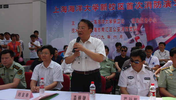 为加强消防知识在学校的宣传和普及,使广大学生了解和提高发生火灾后的逃生技巧,学会自救和互救,做到临危不乱,有序、迅速地按照消防逃生路线安全疏散,避免因火灾而发生人身伤亡事故。6月16日下午,我校在学生公寓第五小区41号和42号楼成功举行新校区首次消防演习。校长潘迎捷、副校长封金章、南汇公安分局副局长严衍辉、南汇消防支队支队长季华、政委沈渭勇、学校相关部门负责人、各学院党委副书记和学生代表共1000余人参加、观摩了演习。消防演习活动仪式由校保卫处姜新耀处长主持,南汇消防支队邹冲参谋长和校保卫处张旭副处长任演习现场总指挥。
