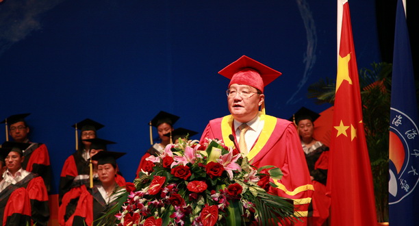 校长潘迎捷教授向圆满完成学业并获得学士学位的同学们表示热烈祝贺,向为他们成长成才付出大量心血和劳动的全校教职员工表示诚挚敬意,向支持他们奋发成才、长期关注上海海洋大学发展建设的各位家长和亲属们表示亲切问候和衷心感谢;再次,潘校长用他为经济管理学院2009届毕业生纪念册上题写的寄语:“志存高远、牢记校训、心系母校、报效祖国”向毕业生们提出了希望;最后,潘校长希望毕业生们无论走到哪里,无论从事什么职业,希望大家一如既往地关注母校的建设和发展,为母校腾飞做出贡献。同时,学校也会永远像母亲一样支持你们、帮助你们、欢迎你们,希望大家“常回家看看”,他还与毕业生们相约海大百年华诞时再相见!