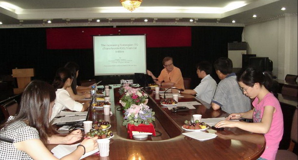 会议最后,申请参加中挪共同培养研究生的申请人进行了详细和精彩的自我介绍。通过交流,中挪双方都在渔业经济研究方面获得有益的认识,在学术交流、研究生教育方面取得进一步的共识。