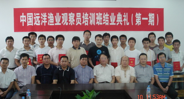 2009年7月10日上午,第一期中国远洋渔业观察员培训班结业典礼在我校举行。潘迎捷校长为15名学员颁发了结业证书。中国远洋渔业分会黄宝善秘书长、上海远洋渔业有限公司、浙江远洋渔业股份有限公司、中国水产总公司、山东中鲁远洋渔业股份有限公司等协会和企业代表10余人专门来校参加结业典礼。