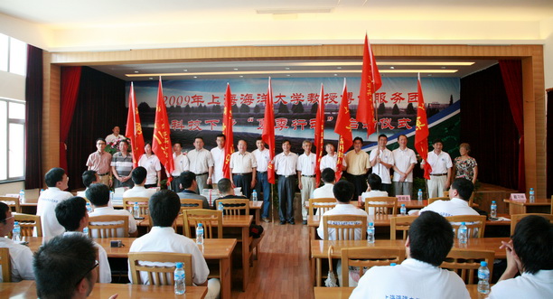 启动仪式上,潘迎捷校长向金山区、嘉定区、松江区、青浦区、奉贤区和崇明县水产技术推广站的负责同志赠送了我校编撰出版的渔业科技入户指导书籍。参加启动仪式的领导和专家还向上海海洋大学教授博士服务团八个分团的团长授旗。