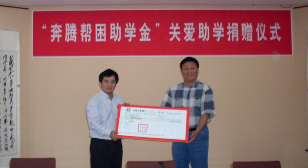 2009年10月15日上午,“奔腾帮困助学金”关爱助学捐赠仪式在工会多功能厅举行,新疆奔腾生物技术有限公司向我校新疆生源少数民族学生进行了关爱助学捐赠。校党委副书记、副校长黄晞建,新疆奔腾生物技术有限公司总经理马允先生,校学生处副处长罗汝坤,外国语学院党委书记齐亚丽及教师代表、全体受赠学生出席了捐赠仪式。仪式由外国语学院党委副书记戴辉明主持。