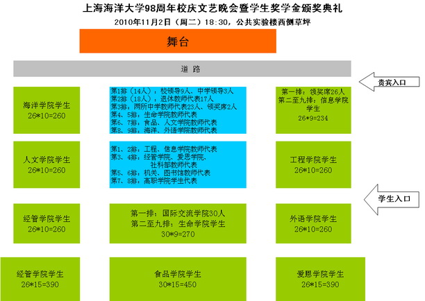 98周年校庆文艺晚会暨学生奖学金颁奖典礼座位表
