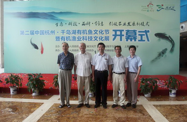由浙江省杭州市人民政府、省文化厅、省文物局、省海洋与渔业局和上海海洋大学主办,浙江省淳安县人民政府、杭州市农办和浙江自然博物馆承办的中国杭州第二届千岛湖有机鱼文化节暨有机渔业科技文化展于2011年8月18日在杭州市浙江自然博物馆隆重开幕。我校党委副书记吴嘉敏教授、生命学院党委书记张登沥,以及刘其根教授、陈马康教授、童合一教授等应邀出席,吴嘉敏副书记还应邀在开幕式致辞。本届文化节的主题是“生态、科技、品牌、创意,引领农业发展新模式”。