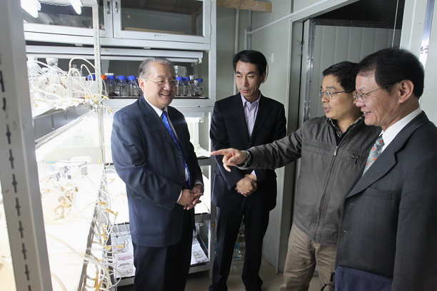 潘校长向来宾介绍了学校的发展历史、科研特色和科技服务,特别是介绍了我校为我国远洋渔业的发展做出的贡献,并向蔡日耀副署长重点介绍了我校与台湾苗栗县签署了中华绒螯蟹养殖科技合作协议后,我校在中华绒螯蟹苗种供给、养殖技术等方面所提供的技术指导和服务。