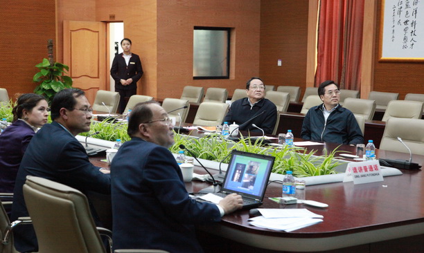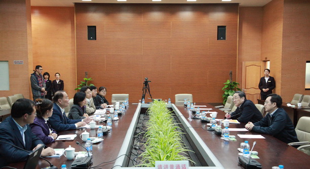 下午4时许,在校党委书记虞丽娟、校长潘迎捷和副校长封金章陪同下,俞正声书记来到图信息中心102会议室,与我校新疆培训班领队、辅导员、新疆喀什在沪培训总领队、浦东新区合作交流处负责同志等进行了座谈,了解新疆喀什地区来沪培养学员在我校的培训情况。座谈会上,校党委书记虞丽娟代表学校全体师生欢迎俞正声书记来校视察,同时感谢俞书记来校看望师生,关心新疆班培训工作。虞丽娟书记综合汇报了我校长期以来在支持边疆建设开展的科技下乡服务、支教工作和培训等方面的援疆项目实施情况。校长潘迎捷详细汇报了新疆培训班学员入校以来的报到工作、学习、生活和正在进行的岗位实习情况。