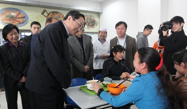 俞正声书记在清真餐厅仔细询问新疆学员生活情况