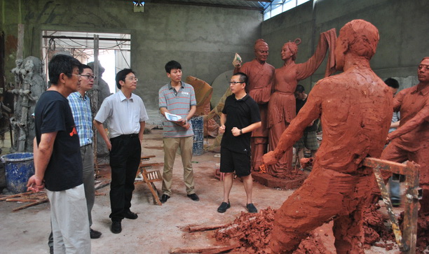 作为百年校庆系列筹备工作及大学文化内涵建设工程项目,校友张闻天等的景观雕塑泥样已初步完成。副校长封金章与后勤管理处处长俞渊、档案馆馆长宁波一同赴南京看望了张闻天之子张虹生先生夫妇,并一同前往雕塑制作现场察看张闻天雕塑泥样及其他雕塑进展情况。张虹生先生认为张闻天雕塑泥样很好地体现了张闻天的气质与精神,同时指出2点微小不足期待改进。目前大部分雕塑已进入细节深化阶段。