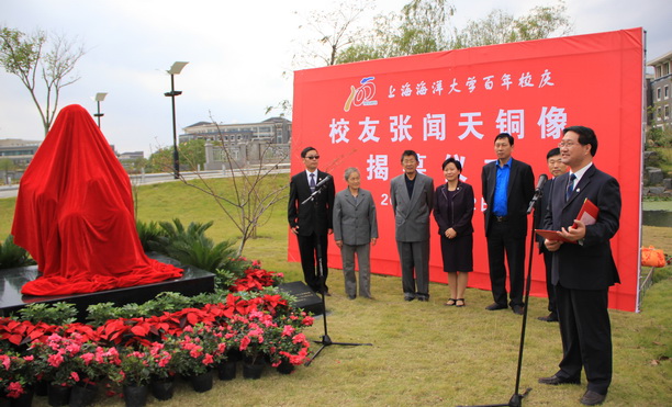 为深入缅怀张闻天先生,不断激励一代又一代的海大人。11月2日下午1点,中国共产党早期重要领导人、我校杰出校友张闻天先生的铜像揭幕仪式隆重举行。张闻天之子张虹生先生及夫人廖蔚訓女士、校领导虞丽娟、潘迎捷以及张闻天故居宣传接待部主任奚国标及师生代表。校长助理吴建农主持揭幕仪式。
