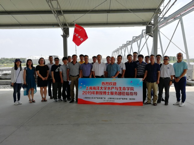 教授博士服务团在松江区国家级水产良种场合影