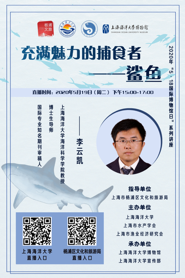 为迎接主题为“致力于平等的博物馆:多元和包容”的2020年“5·18国际博物馆日”,上海海洋大学博物馆将于5月18日和5月19日举办科普系列讲座线上直播。