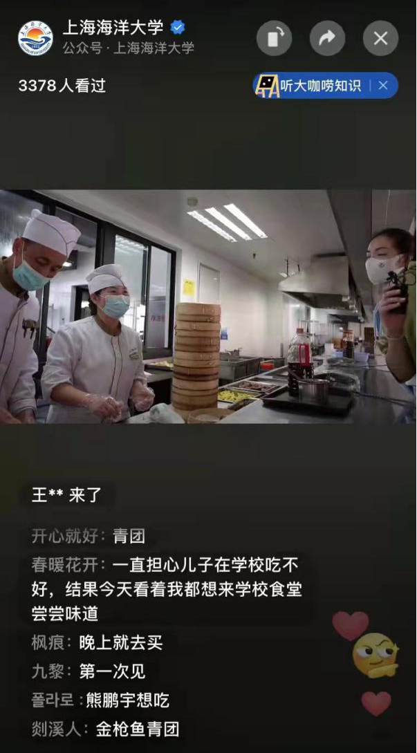 如今食堂的大厨正在为即将到来的清明时节准备着海大网红食品“青团”。同学们与观看直播的家长们纷纷留言表示:“一粥一饭,我们一定珍惜!”“一直担心儿子在学校吃不好,结果今天看着我都想来学校食堂尝尝味道。”