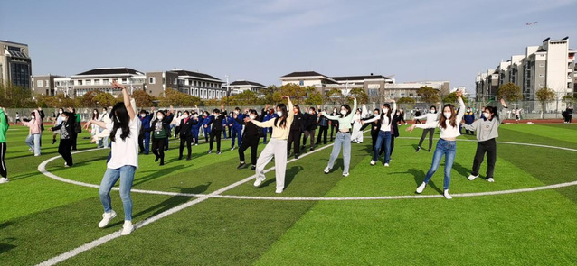 “我像只鱼儿在你的荷塘”“她总是,只留下电话号码”“怎么也飞不出,花花的世界”“新的风暴已经出现,怎么能够停滞不前”西循着声音找去,只见西操场师生排着队列,跟随着音乐,摆动起双臂,迈动双脚,舞动着!广场舞不再是老一辈人的专属,新时代大学生赋予了它新的朝气。除了青春洋溢的同学们,还有和蔼可亲的后勤叔叔阿姨,兢兢业业的老师们。他们一改平日认真工作的样子,变得更加亲切活泼,和同学们舞到了一块儿去,彼此谈笑风生。阳光照耀着的是一张张幸福的笑脸,封校的压抑、学业工作的压力一下子被释放。广场舞不仅仅提高了同学们的身体素质,改善了疫情期间校园内师生员工们的心情,最重要的,音乐里动作中流淌着的,是海大师生员工热爱生活的旋律。