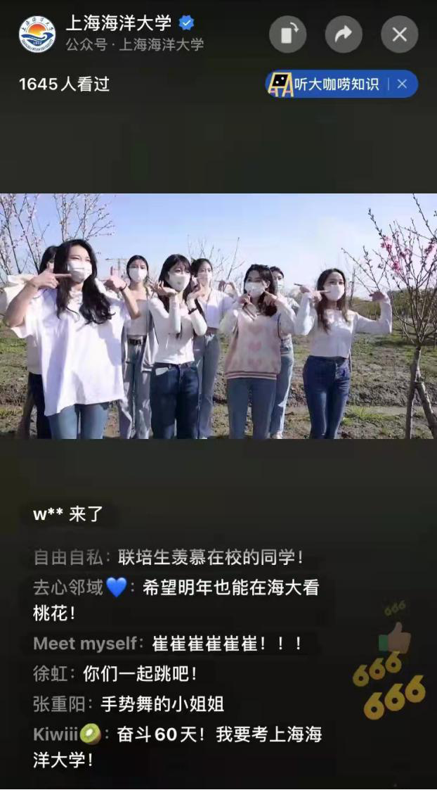 第一期直播从3月25日策划到3月29日直播,海大师生同心聚力,3天紧密筹备,幕后师生工作人员30余人,团队成员都为直播新手情况下,克服了直播设备条件有限;白天工作、夜里加班。阴雨连绵的之后迎来清明前的晴日,完成了首场校园直播,为大家讲述海大校园里的守护故事。后勤奉献、老师付出、美丽春光、生命萌动.......无数的美好由他们创造,由大家共同守护。春光明媚,我们相信,海大人齐发力,定能守得花开!