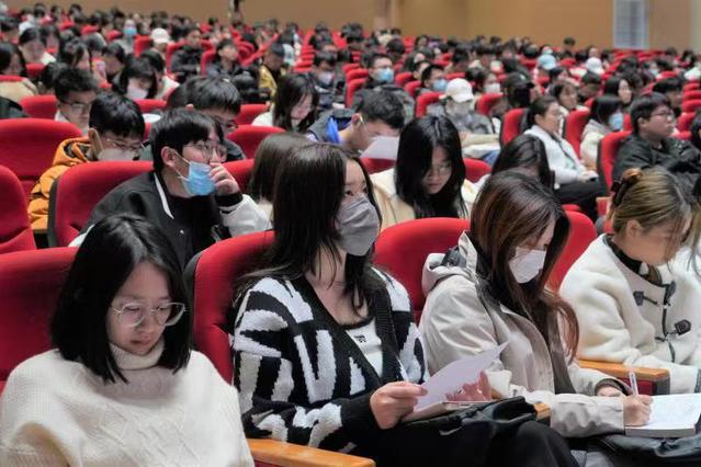 本次开学第一课共有500余名学生在学生活动中心报告厅现场听课,其余15000余名学生通过线上观看现场直播。这堂开学第一课有深度、有温度,不仅是深入学习党的二十大精神的宣讲课,也是红色校史学习课,对于同学们来说更是生涯规划指导课。