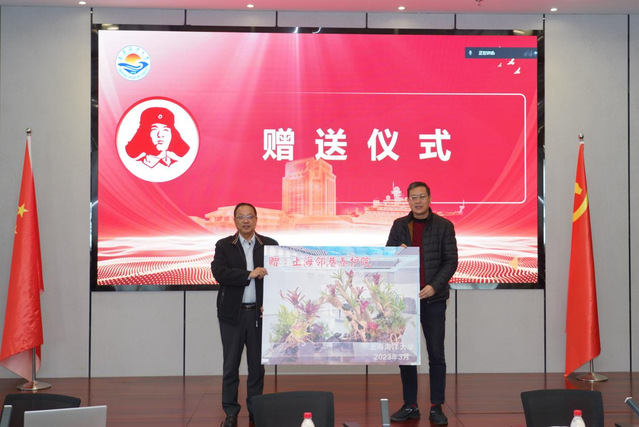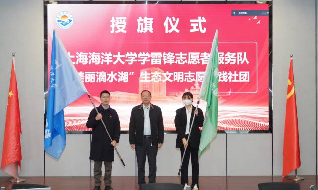 会上,万荣为上海海洋大学后勤保障践行新时代雷锋精神基地揭牌,向上海海洋大学学雷锋志愿者服务队、“美丽滴水湖”生态文明志愿实践社团出征授旗,并代表学生志愿者向邻港养护院赠送水族造景摆件。