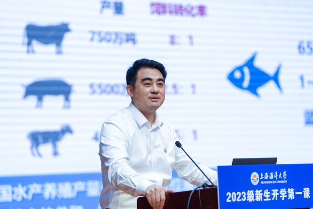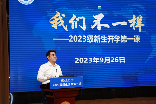围绕“我们”,王宏舟指出在这样一个不一样的学校,你要成为不一样的你,要推动“勤朴忠实”校训精神的传承和发展,要坚持“把论文写在祖国的江河湖泊和世界的大洋大海上”的办学传统,要能够“下得了塘、上得了船、进得了库”。他勉励新生要有不一样的情怀,志愿为祖国的繁荣昌盛贡献力量;要有不一样的眼光,去捕捉国家需求、行业动态、科研瓶颈;要有不一样的勤奋,扎根一线、深入田间,走进池塘,知农爱农;要有不一样的心态,保持海一样稳重的心态,在挫折和磨练中成长。