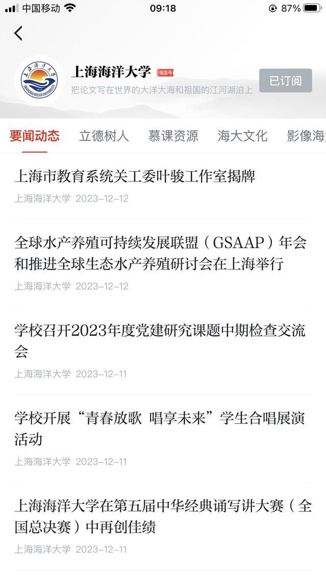 2023年12月14日,“上海海洋大学”学习强国号平台上线三周年。