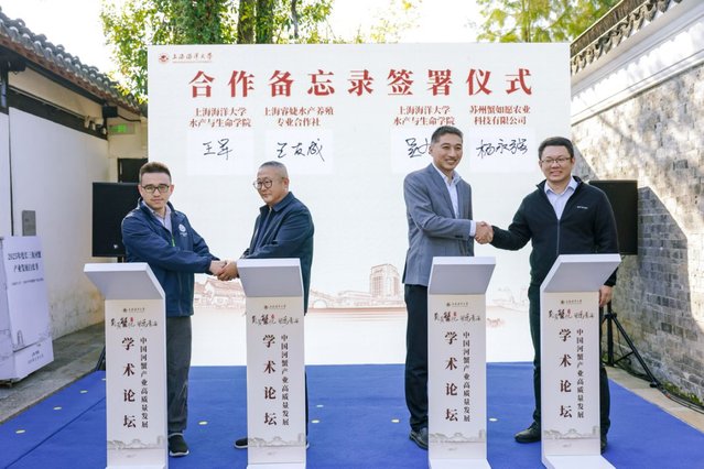 活动上,王平、王宏舟、倪向军等见证青浦区农业农村委员会、上海海洋大学水产与生命学院共同签署合作备忘录。在合作框架下,上海海洋大学聚焦河蟹等水产养殖品种的良种选育、高质量苗种培育、绿色生态养殖示范、品牌建设以及人才培养等方面,与青浦区全面深化合作,构建全方位、宽领域、多层次的区校战略合作关系。