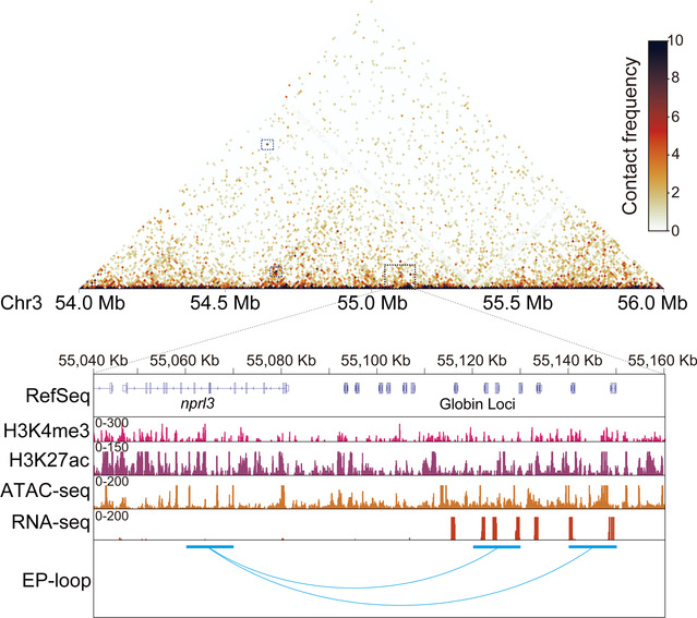 在这项工作中,团队以斑马鱼胚胎为研究对象,整合Hi-C、ATAC-seq等多组学数据,成功绘制出400多对增强子与基因之间互作关系的“基因遥控网络图”,覆盖鱼类早期发育的关键时段。在此基础上,研究人员利用CRISPRi技术按下多个增强子的“开关”,观察到了直观的生物学响应:例如,当调控血液发育的增强子被抑制后,血红蛋白水平明显下降;当控制鳍条生长的增强子被关闭时,超过40%的胚胎出现鳍条缺失表型。
