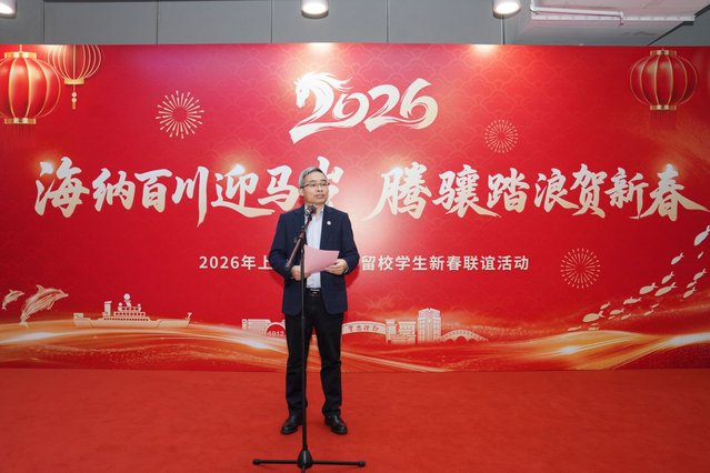 华灯初上,暖意融融。1月27日晚,上海海洋大学第二餐厅二楼张灯结彩,处处洋溢着喜庆的节日氛围。“海纳百川迎马岁腾骧踏浪贺新春”2026年上海海洋大学留校学生新春联谊活动在此温馨启幕。校长胡炜,党委副书记、副校长夏雅敏,副校长倪卫杰,副校长江敏及留校师生代表400余人齐聚一堂,共同开启这场新春盛宴。