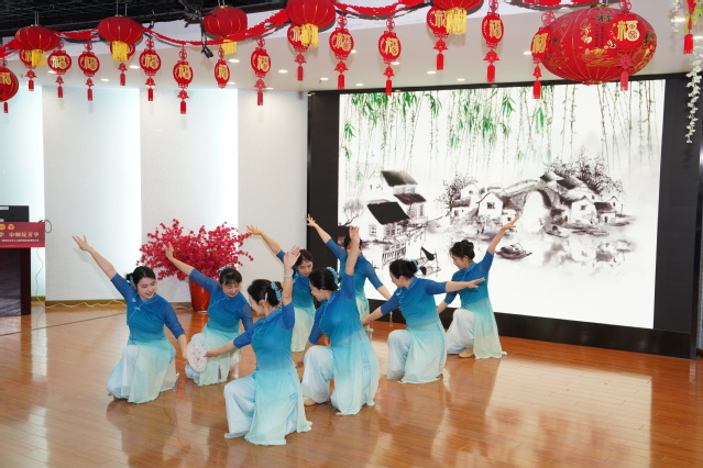 大会在校教工舞蹈协会的古典舞《入画江南》中唯美启幕,女教职工们用柔美舞姿展现了海大女性自信优雅的风采。现场还融入了机器人表演等科技元素,为节日增添了传统与创新交融的独特氛围。